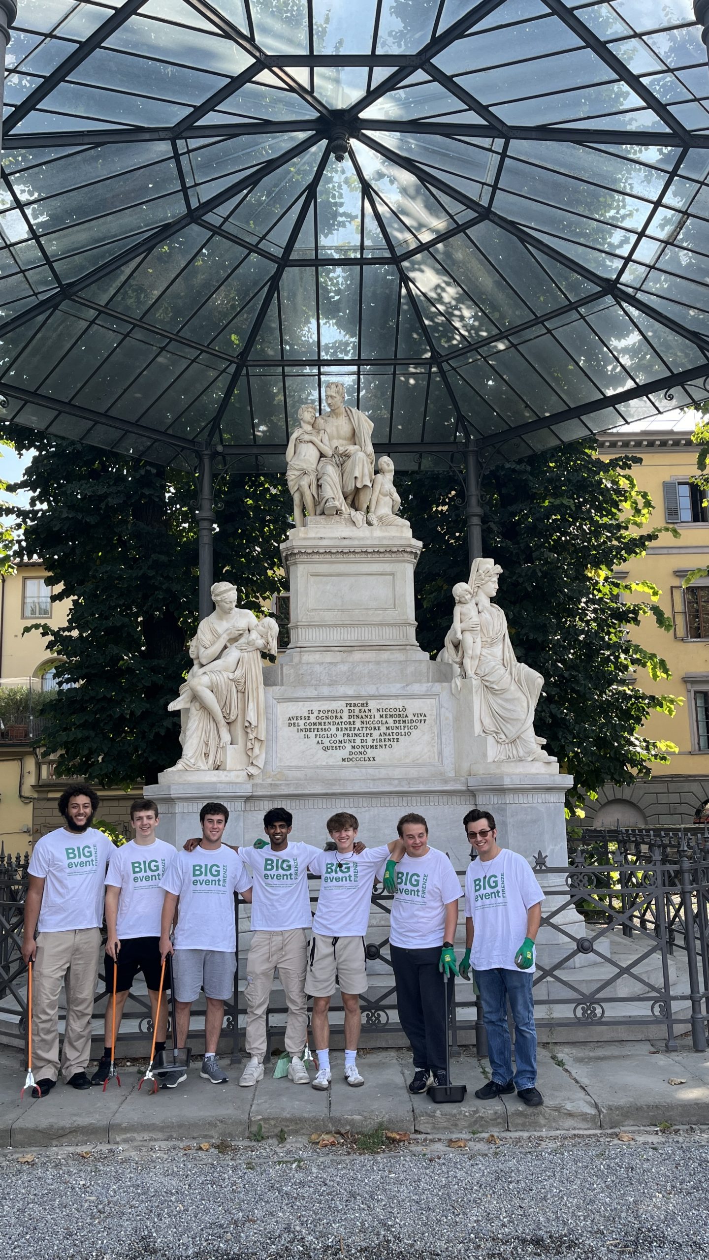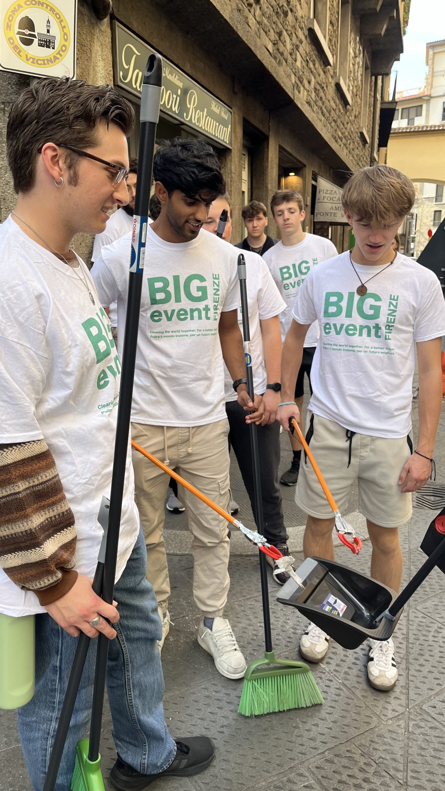 On September 25, 2024 the Big Event took place in Florence, an initiative organized by American universities to help clean up the city. The Big Event was created ten years ago, in 2014, through the collaboration between American universities in Florence and neighborhood, local, and regional volunteer organizations. The initiative has the goal of cleaning the city of litter and small waste, particularly the ever-present cigarette butts, which significantly contribute to the feeling of neglect and disrepair in certain public areas. It is also an opportunity for American students in Florence to give back to the community and show that they care for their host city.