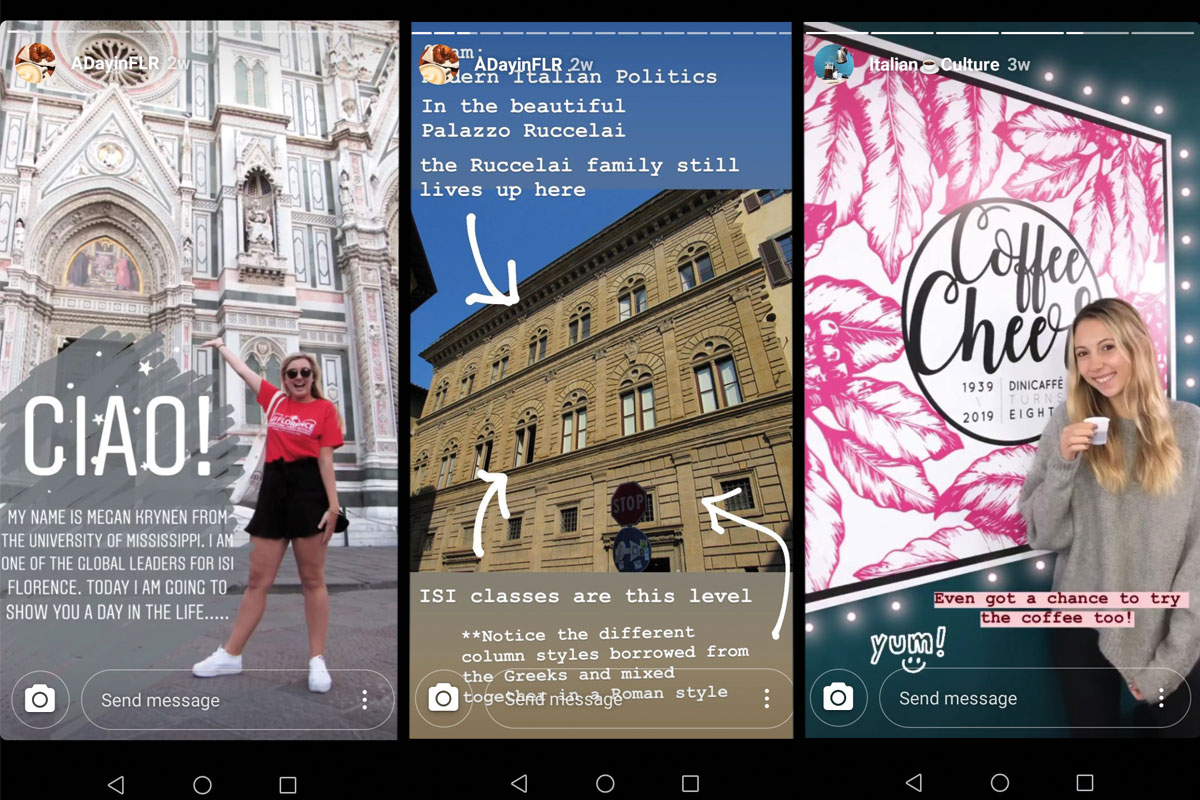 Motivated students eager to share their study abroad experience with current and future ISI Florence students are urged to apply to the Global Leadership Program. This semester-long program is an opportunity for students to develop and enhance their leadership competencies and cross-cultural awareness through the creation and implementation of social activities and reflective initiatives.