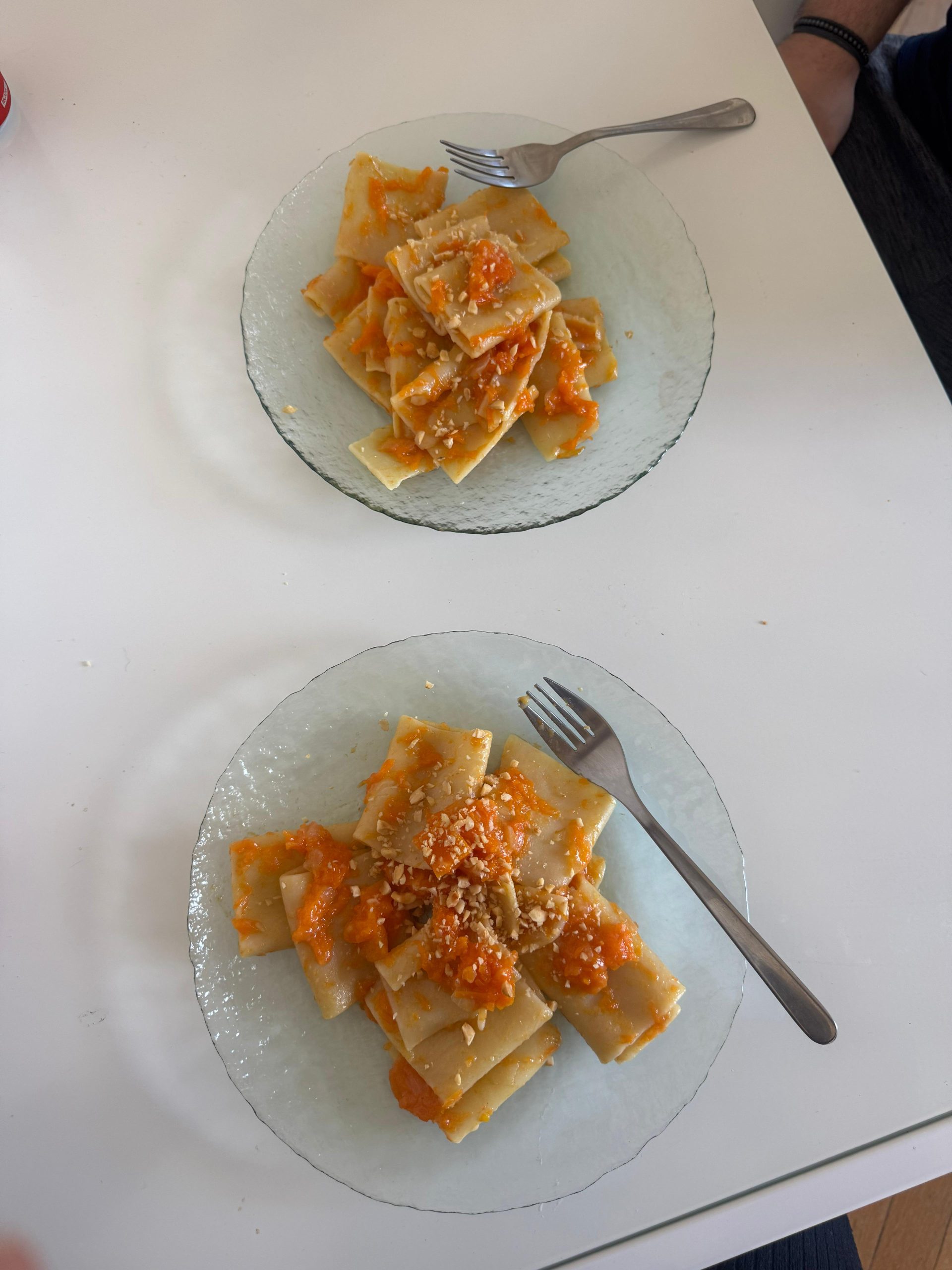 - Team #3 with their beautiful Paccheri con la Zucca.