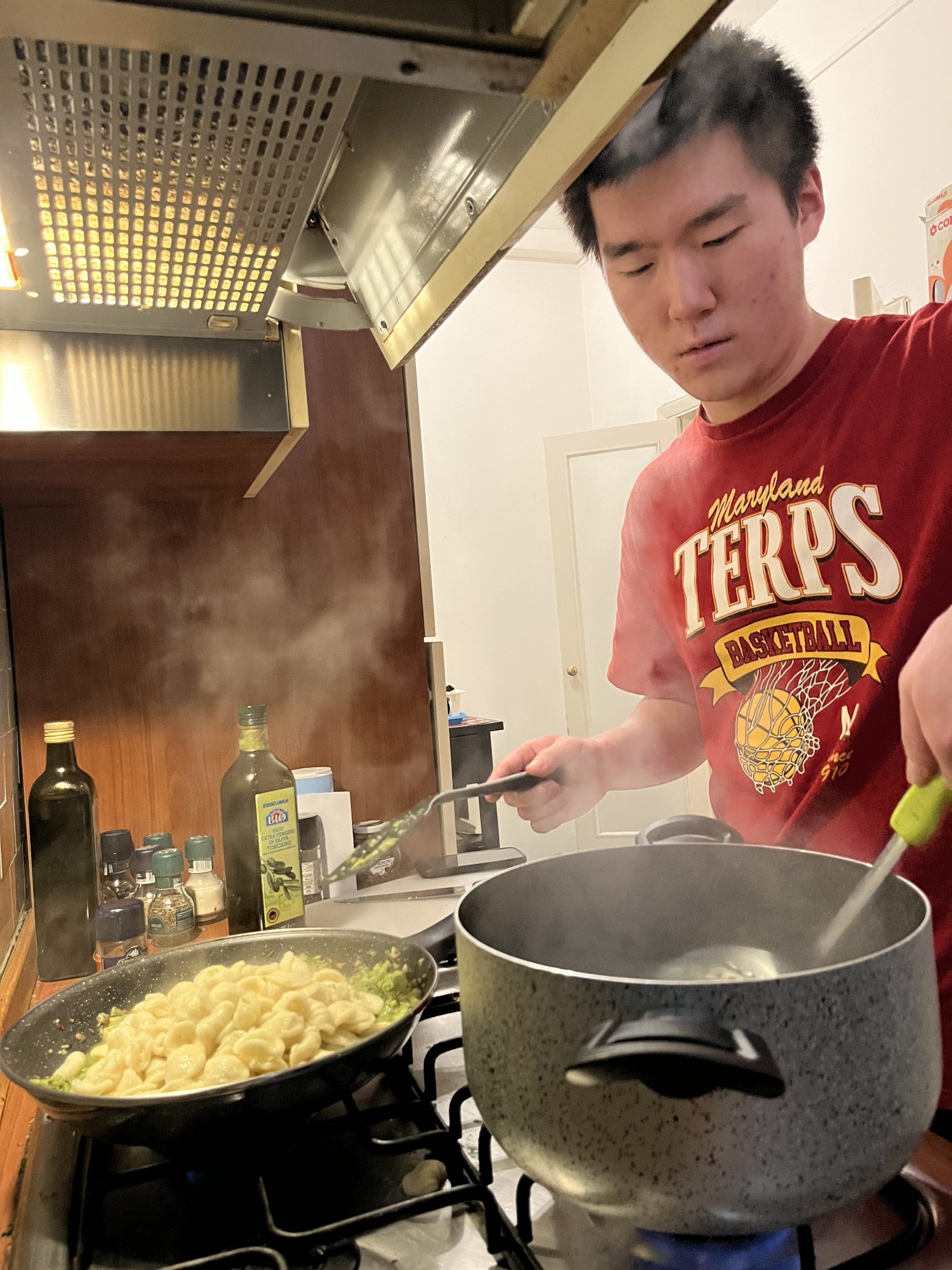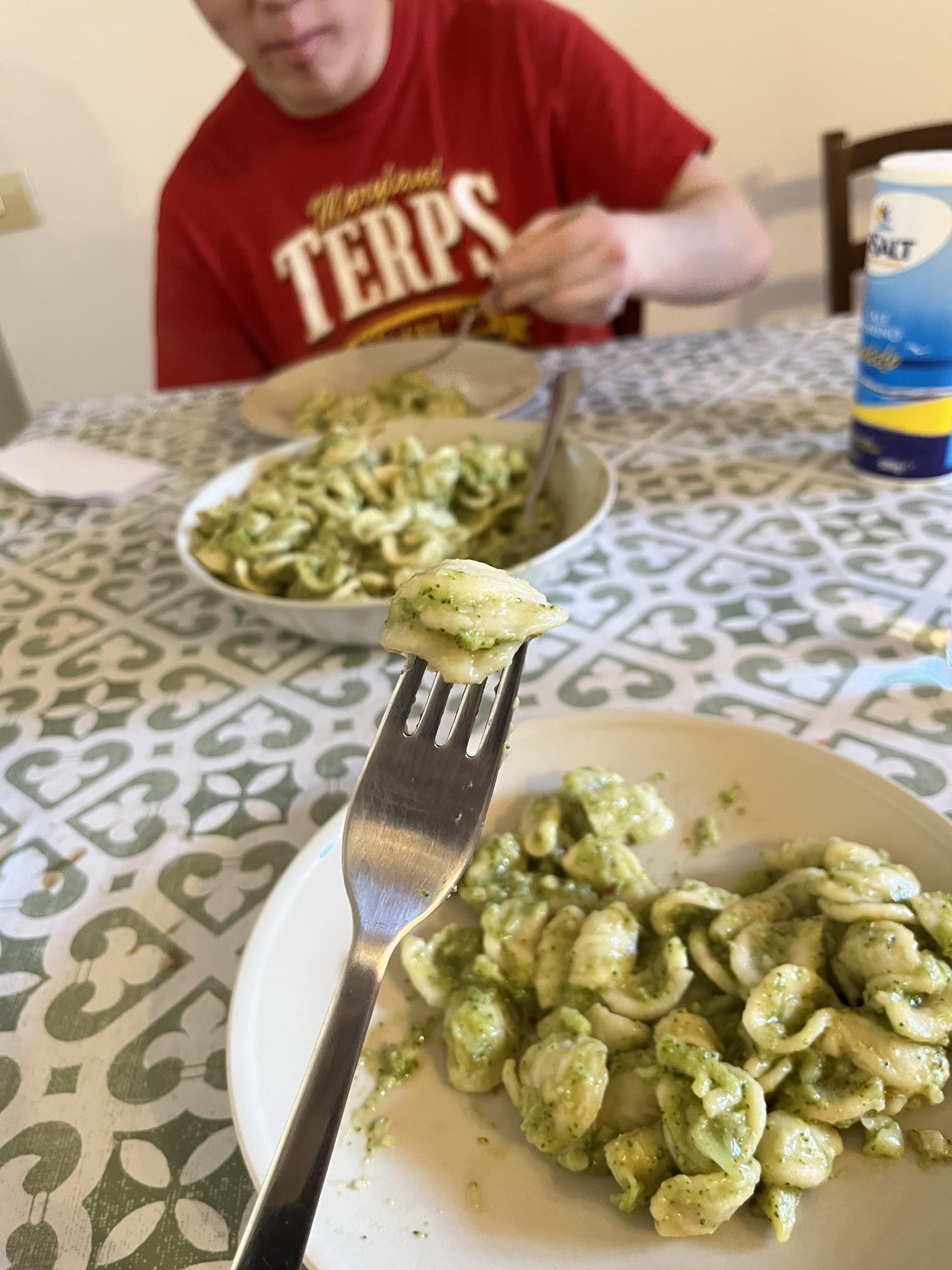 Laura Wong, from Roger Williams University, said, “This activity was very fun! I greatly enjoyed working with another student to shop at the market and cook! Together, we were unstoppable and made delicious orecchiette con broccoli”.
