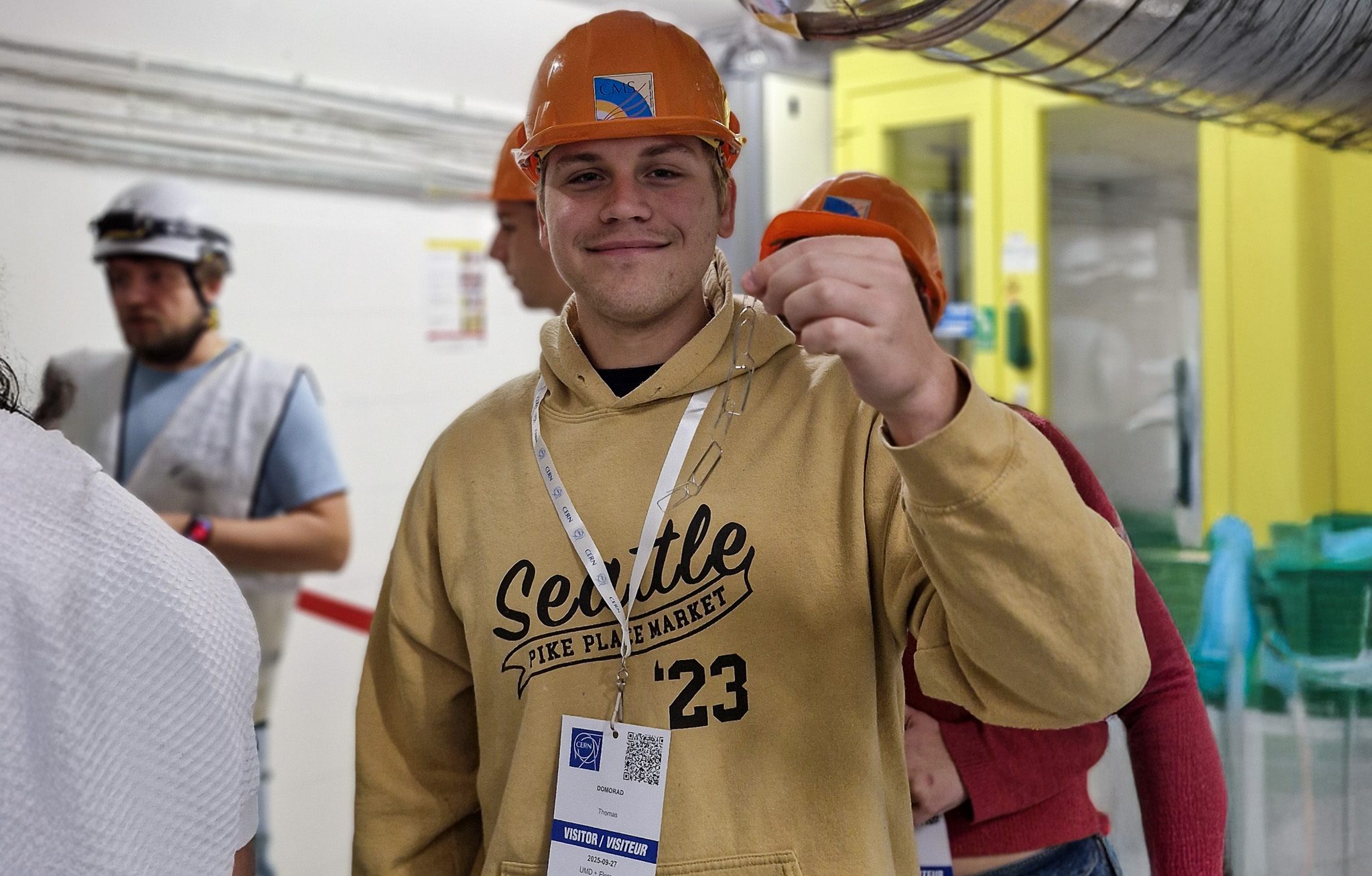 “The UMD Physics students had an amazing opportunity to visit one of the physics capitals of the world in Geneva, Switzerland. Our tour of CERN was extremely informative and, quite frankly, powerful too. The site itself is very historic and home to many monumental discoveries in physics, including the discovery of many elementary particles. As we descended to almost 100 meters underground, we could see the effects of the high-intensity magnetic field through a paper clip chain bending towards the field. It was a brilliant experience thanks to the coordinator Emiliano and our tour guide at CERN.”